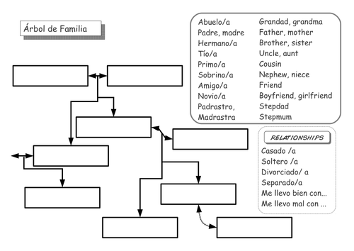 The activity is a highly engaging puzzle game and a worksheet to respond questions about family relationships. Start studying El árbol familiar The Family Tree. I have shared my eye-catching creative resources - already made and trialled - often with built-in differentiation to make your day a little easier.